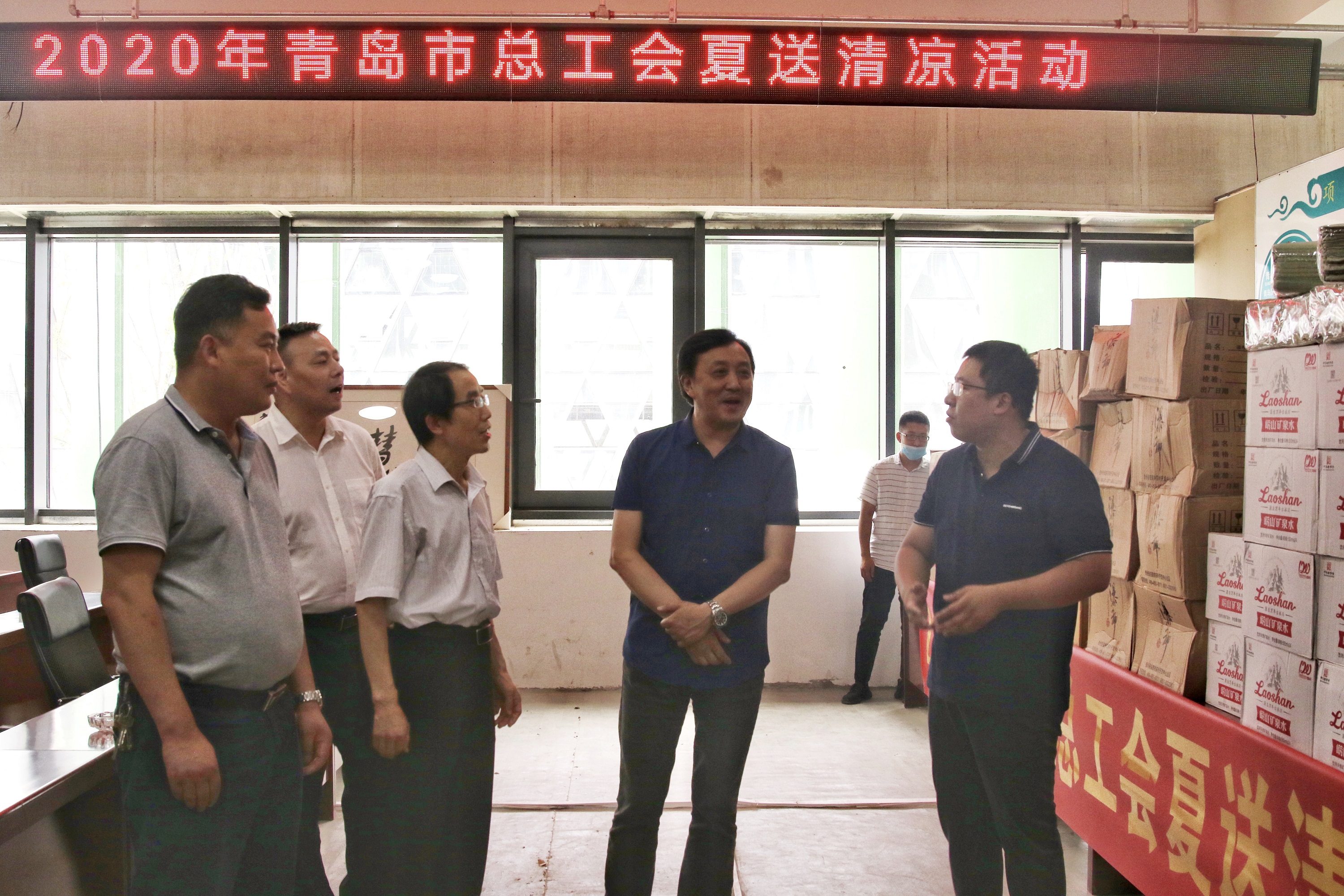 ? ? 2020年7月17日下午,青島市總工會(huì)黨組成員、副主席周新國(guó),青島市總工會(huì)權(quán)益保障部副部長(zhǎng)宋延兵一行來到青島一建集團(tuán)國(guó)際院士港二期項(xiàng)目部,深入生產(chǎn)工地,為奮戰(zhàn)在一線的職工送來防暑物資。